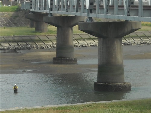 立ち込んで 橋脚に流し込んで釣るのが良いとは知っていますが 満潮1時間前 入水は無理です。