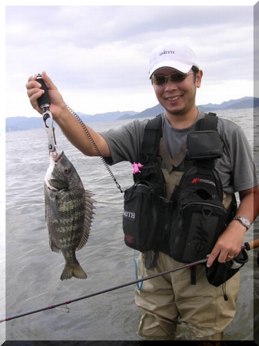 魚影も濃く、この日はたくさんのチヌが護岸沿いを泳いでいましたよ!