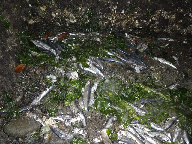 この干潟でイワシが打ち上げられているのを見るのは初めてで、かなりの数が回っているのでしょうか?