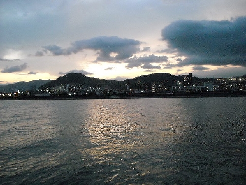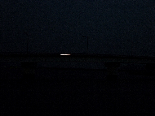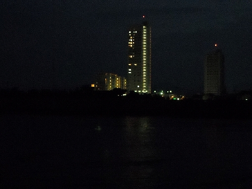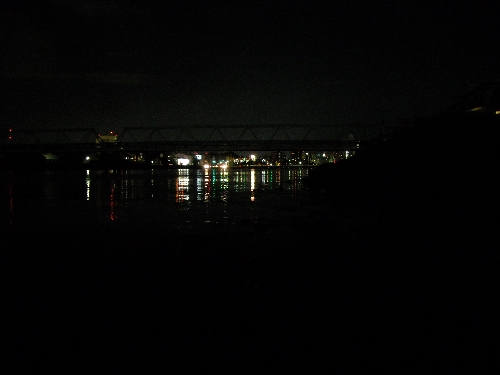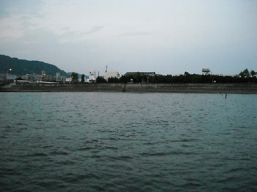 午後9時半、太田川放水路河口左岸へ来たものの、強風 雷雨 激速な潮に激濁り。