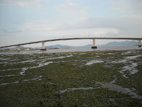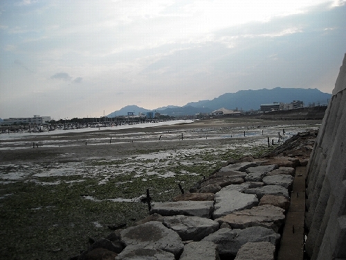 夕方の5時に、昨日教えていただいた岡の下川河口の干潟へ来て見ました。