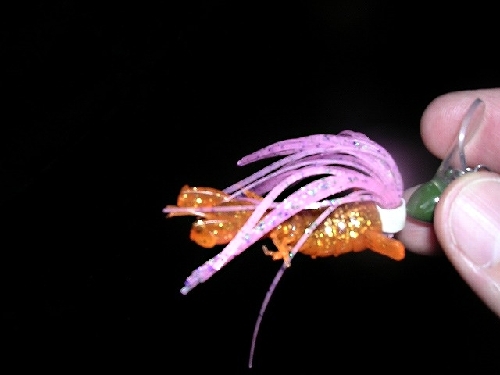 このピンクのゴキブリのようなワームは柔らかく千切れやすいのが欠点です。