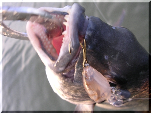 どうしてこんな掛かり方をしたのか、口の外側からフッキング!