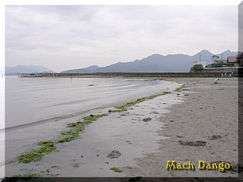 で さっそく地御前カキ打ち場裏の海岸へ。