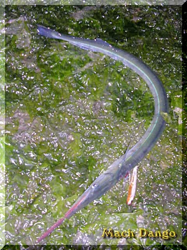 初めてダツを釣った。 気持ち悪いのですぐにリリース。